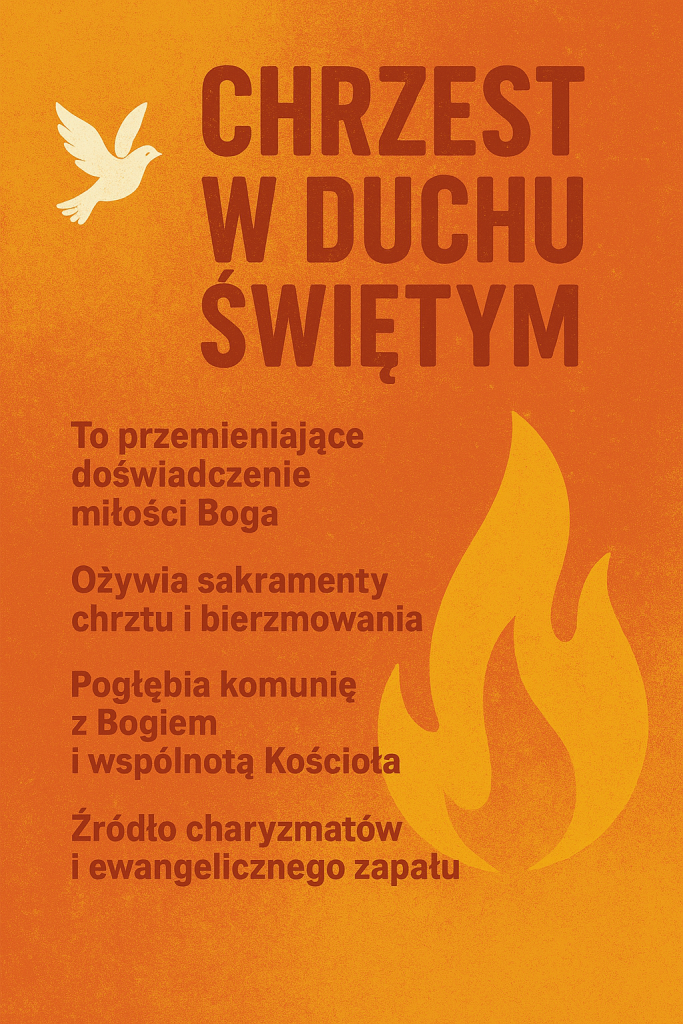 - Chrzest w Duchu Świętym nie jest dodatkiem do chrześcijaństwa, lecz jego istotą – to doświadczenie, które ożywia sakramentalne życie i prowadzi do głębszej relacji z Bogiem.